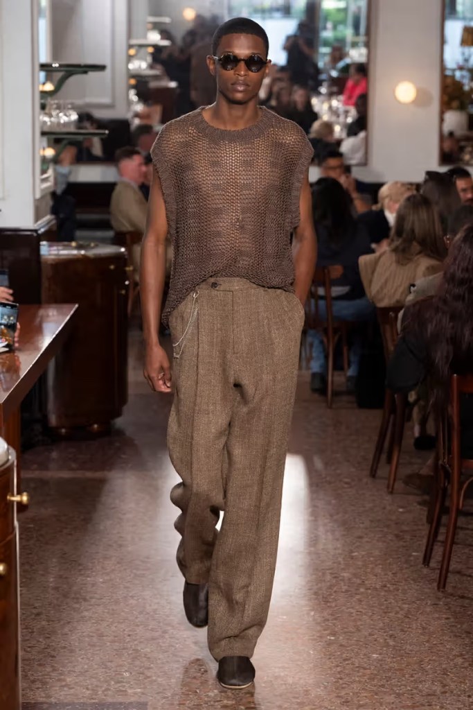 Nicky Campbell said that this is what men should be wearing on the red carpet, and I couldn’t agree more. I really like the way Todd Snyder plays with texture and monochrome. He marries earth tones (which we predicted would be trending in 2025 – I love being psychic) with earthy materials in a way that is just *chef’s kiss*.